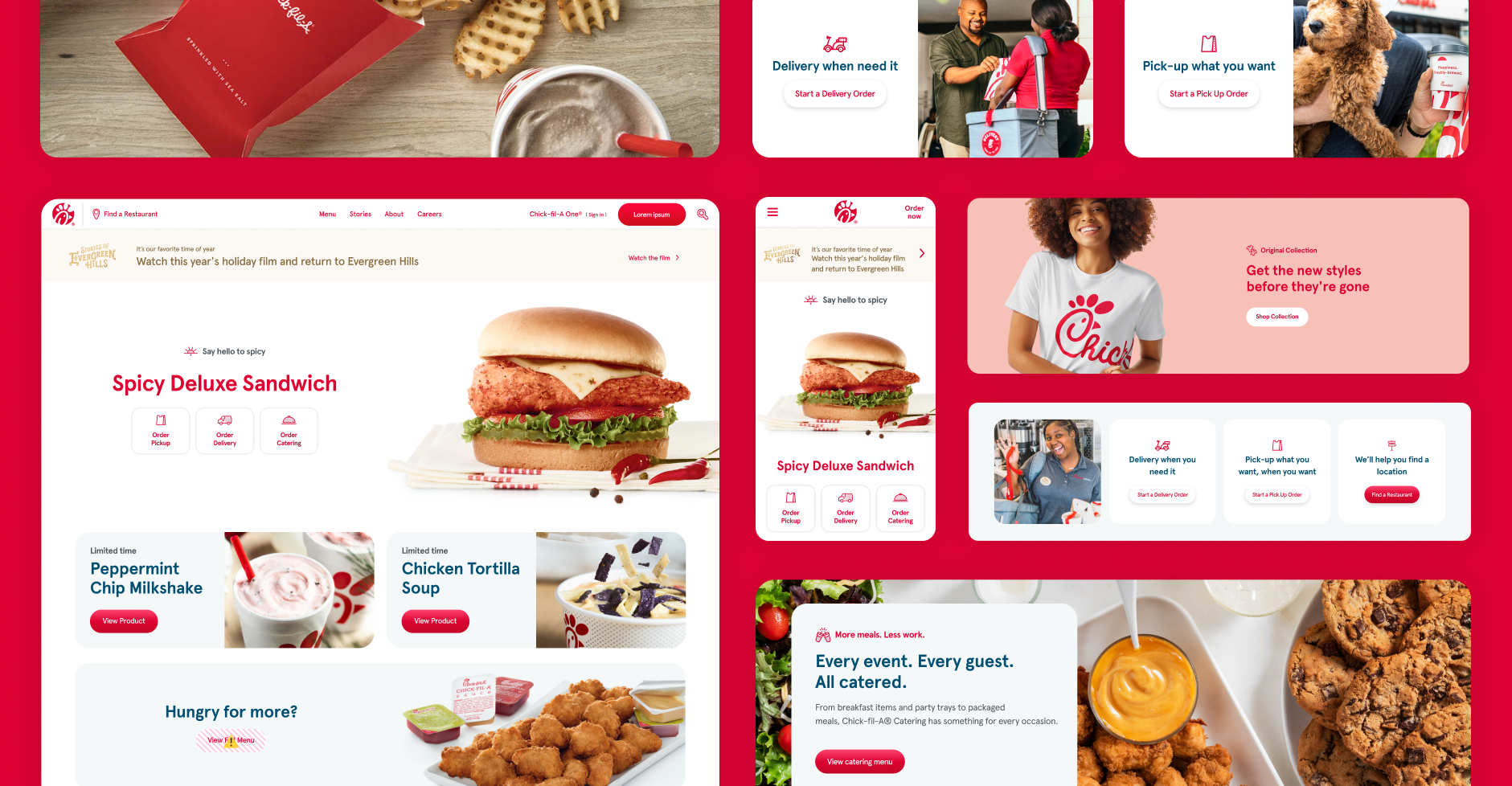 For this project, our team introduced a redesigned system for presenting scalable content, alongside comprehensive guides for implementing the new modular framework. A key highlight was the development of a versatile Hero Module tailored to Chick-fil-A's unique business requirements. This module enabled dynamic day-part promotions and various ordering options, supporting business momentum across different segments. Additionally, we strategically leveraged periods when restaurants were closed, such as Sundays, by shifting the focus to Catering Orders. This approach significantly boosted sales in those segments while maximizing engagement opportunities.